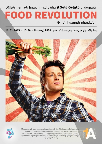 ONEArmenia-ն հրավիրում է ձեզ il Solo Gelato սրճարան՝ "Food Revolution" ֆիլմի հատուկ ցուցադրությանը: