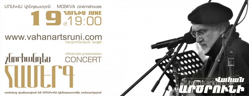 Հունիսի 19- ին` ժամը 19։00- ին Մոսկվա կ/ թ- ում տեղի կունենա Վահան Արծրունու www.vahanartsruni.com պաշտոնական կայքի շնորհանդես- համերգը։
