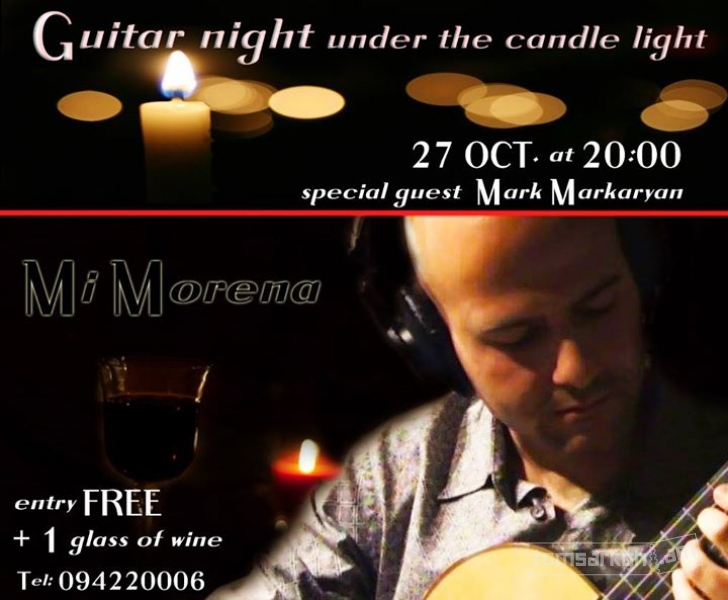 Կարող եք վայելել ռոմանտիկ երեկո կիթառի, գինու և մոմերի լույսի ներքո հեկտեմբերի 27-ին Մի Մորենայում, որտեղ առաջին անգամ ԱՄՆ-ից ժամանած կիթառահար Մարկ Մարկարյանը կկատարի մեր բոլորի կողմից սիրված ստեղծագործություններ: