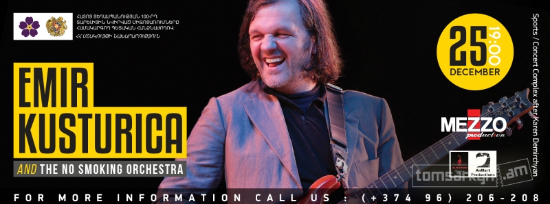 Մեցցո Փրոդաքշնը ներկայացնում է՝ Էմիր Կուստուրիցայի և The No Smoking Orchestra-ի համերգը Երևանում: Համերգը տեղի կունենա դեկտեմբերի 25-ին` ժամը 19:00-ին Կ.Դեմիրճյանի անվ. մարզահամերգային համալիրում: