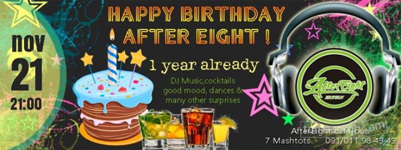 AfterEight-ը իր հավատարիմ ընկերների և հյուրերի համար պատրաստել է հիանալի երեկո, պարային երաժշտություն, հյուրասիրություն և այլ անակնկալներ: