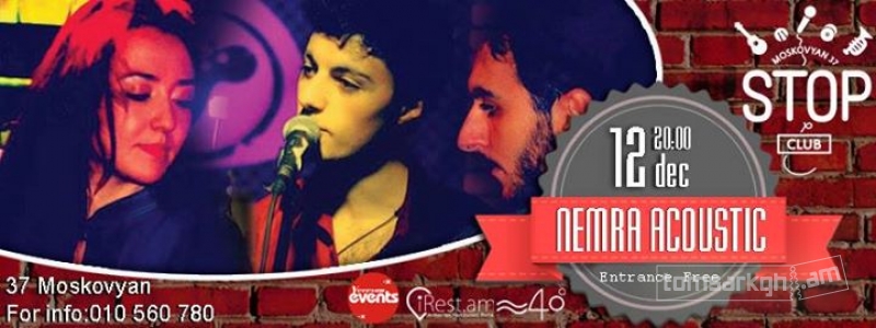 Շաբաթ երեկոն Նեմրայի ակուստիկ կատարումների ներքո և իհարկե, Ստոպ Ակումբի հաճելի մթնոլորտում: Մուտքն ազատ է: