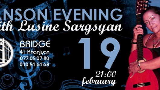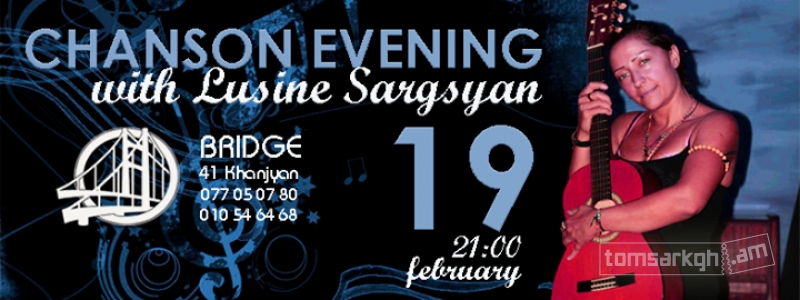 Հրավիրում ենք շանսոնի կենդանի երաժշտության երեկոյի Լուսինե Սարգսյանի մասնակցությամբ՝ հատուկ ուրբաթ օր Բրիջի ընկերական մթնոլորտում: