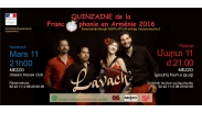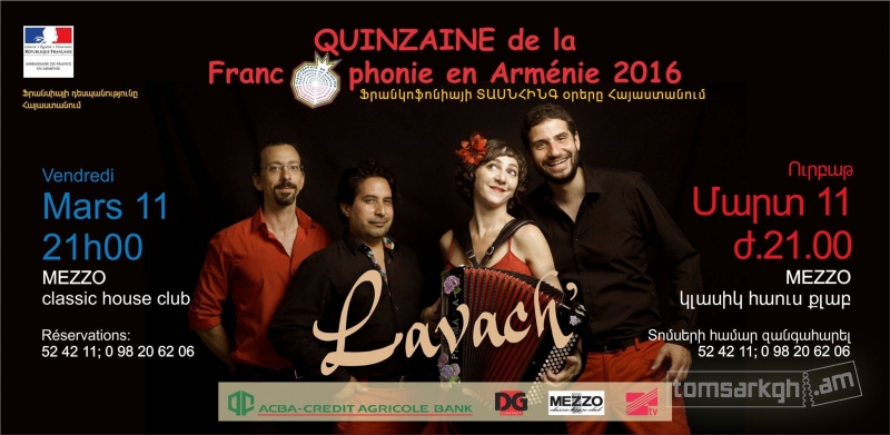 Dans le cadre de la «Quainzaine de la Francophonie 2016», l’Ambassade de France en Arménie et la Société «DG Contact» présentent le groupe «Lavach’» à Erévan.