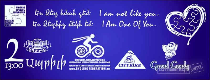 Ապրիլի 2-ին ՛՛Մոսկվա՛՛կինոթատրոնին հարակից Շ.Ազնավուրի հրապարակից կմեկնարկի բարեգործական հեծանվաերթ՝ նվիրված աուտիզմի միջազգային օրվան: