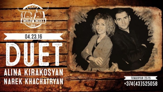 Անցկացրեք հաճելի շաբաթ երեկո Wild West-ում։ Այս անգամ մեզ մոտ հյուր են Ալինա Կիրակոսյանը և Նարեկ Խաչատրյանը։ Մուտքն ազատ է: