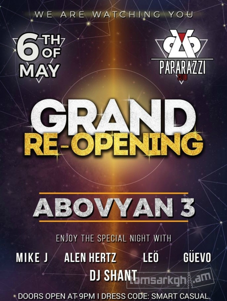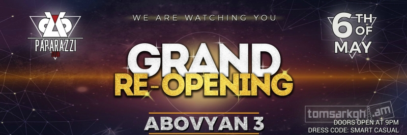 Join us this Friday night for the Grand Re-Opening of Paparazzi Club at New location "Abovyan 3" (infront of Royal Golden Tulip Hotel Yerevan, 4th floor) Bigger venue but the Same spirit is Guaranteed :)