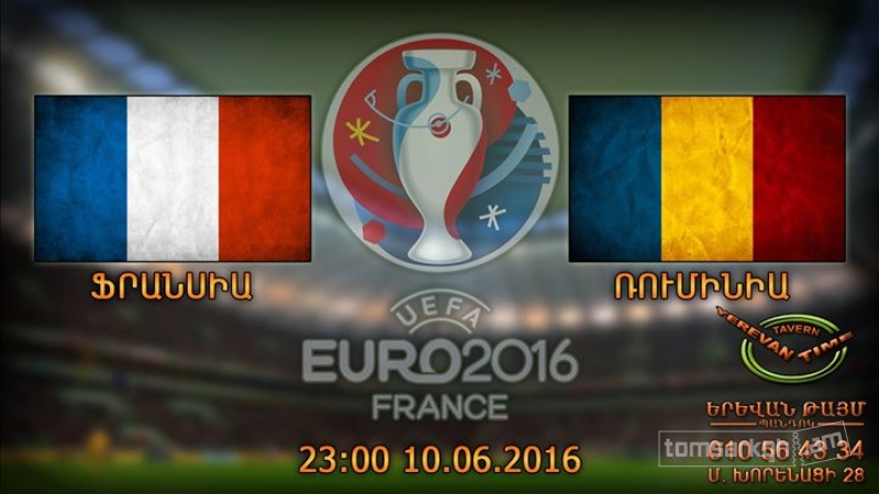 Հրավիրում ենք դիտելու ֆուտբոլի Եվրո2016 առաջնության բացման արարողությունն և առաջին Ֆրանսիա - Ռումինիա խաղն Երևան Թայմի մեծ էկրանին: