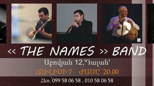 Սպասու՞մ էիք ջազային, հայակական Ֆոլկ, էթնիկ երգ ու երաժշտության երեկոյի՝ ուրեմն հրավիրում ենք Ձեզ երեկոն անցկացնել «Աբովյան-12» սրճարանում՝ «The Names» խմբի հետ: