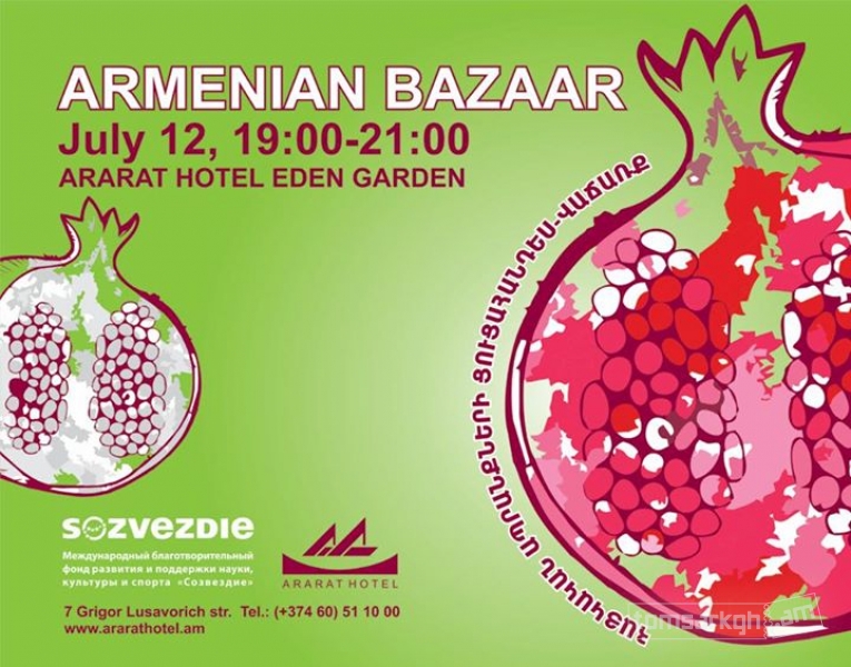 Արարատ հյուրանոցը և «Սոզվեզդիե» հիմնադրամը հուլիսի 12-ին Արարատ հյուրանոցի ձմեռային այգում կազմակերպում են հայկական ապրանքների ցուցահանդես-վաճառք, «Armenian Bazaar»: