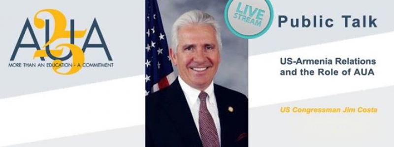 The American University of Armenia is proud to host a public lecture by Congressman Jim Costa, who represents California’s 16th Congressional District. Also present will be Mr. Berj Apkarian, Honorary Consul of Armenia in Fresno, and several visiting guests from California State University, Fresno.