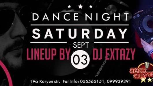 Մեկնարկում է մեր հաջորդ պարային շաբաթ օրը #DJExtazy-ի հետ, որի ժամանակ ձեզ սպասվում է թույն մյուզիք, պարային տրամադրություն և հատուկ մթնոլորտ։
