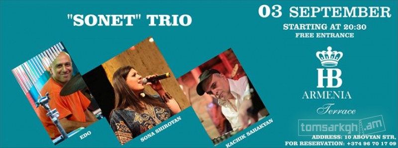 Շաբաթ երեկո HB Armenia-ի #Terrace-ում լսելու ենք հայկական և ֆրանսիական շանսոն "SONET TRIO" խմբի կատարմամբ: