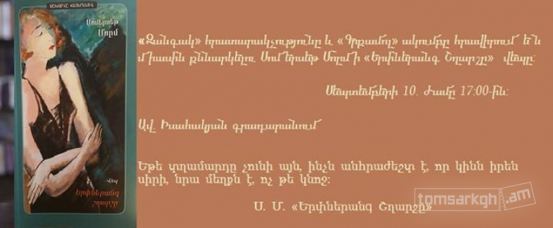 Սոմերսեթ Մոըմի «Երփներանգ Շղարշը» վեպի քննարկումը, որը տեղի կունենա Ավ. Իսահակյանի անվան գրադարանում Սեպտեմբերի 10-ին, ժամը՝ 17:00-ին: