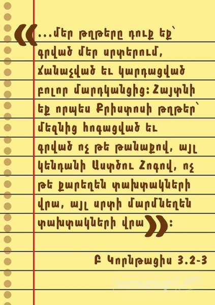 Հոգևոր զրույցի նյութը Բ Կորնթ. 3.2-3 հատվածն է։