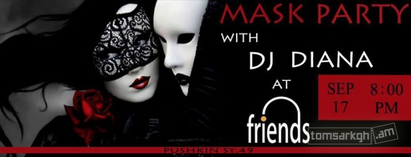 Մեր հավատարիմ Friends-ներ, այս անգամ հանդիպում ենք սեպտեմբերի 17-ին Friends pub - ում: Լինելու է խելահեղ Mask Party, իսկ բարձր տրամադրությունն ապահովելու է DJ Diana-ն : Ձեզ սպասվում է հյուրասիրություն Friends թիմի կողմից' Welcome Drink: