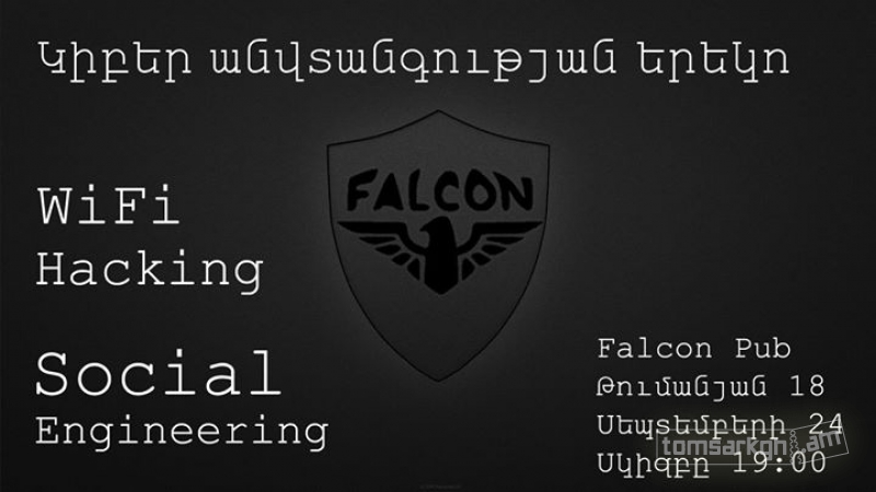 Սիրով համեցեք Falcon pub, կխոսվի WiFi Hacking-ի և Social Engineering-ի մասին, կլինեն օրինակներ։
