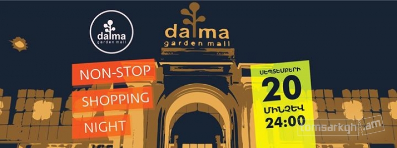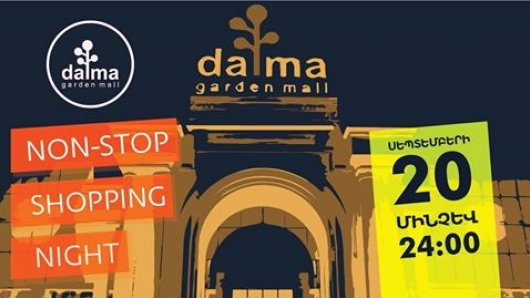 Սեպտեմբերի 20-ին` անկախության տոնի նախoրեին, Dalma Garden Mall-ը հայտարարաում է Non-Stop գիշեր: Այդ օրը մինչ 24:00- ն, Dalma-ի բրենդային խանութները Ձեզ կտրամադրեն գլխապտույտ զեղչեր և շահավետ ակցիաներ: Այդ ամենը կուղեկցվի Non-Stop երաժշտությամբ և անակնկալներով:
