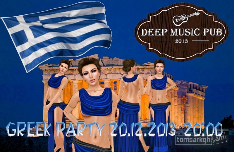 DEEP MUSIC PUB-ը դեկտեմբերի 20-ին կազմակերպում է հունական երեկույթ,որտեղ կհնչի հունական երաժշտություն,կհամտեսեք հունական խոհանոցից հատընտիր ուտեստներ կլինեն նաև անակնկալներ:Բոլորին հրավիրում ենք միասին ուրախանալու: