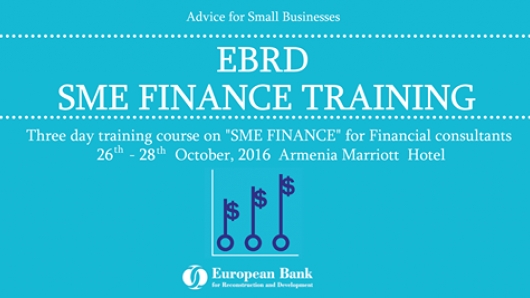 The European Bank for Reconstruction and Development (EBRD) SME Finance and Development Group in Armenia initiated a three day training course on “SME Finance” for financial consultants which will take place in "Armenia Marriott" hotel from 26th -28th October, 2016.