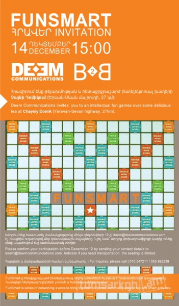 Deem Communications-ը սիրով հրավիրում է Ձեզ թեյախմության և ինտելեկտուալ խաղերի: