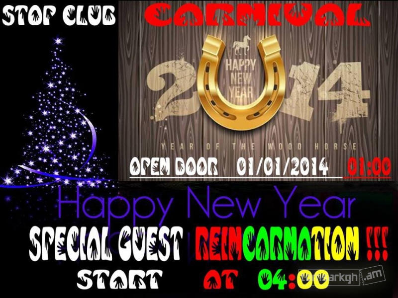 ԾՐԱԳՐՈՒՄ - 01:30-ից մինչ - 03:30-ը Ամանորյա պարային տոնական ծրագիր (ակումբի ոճի մեջ) Ժամը 04:00 - ից REINCARNATION band.