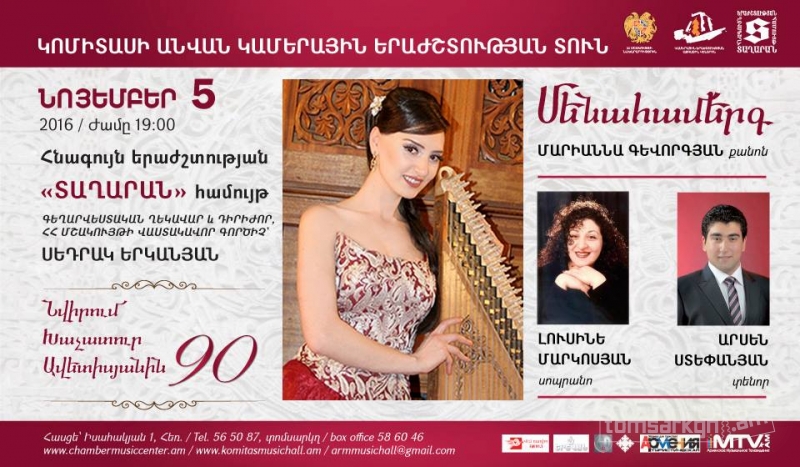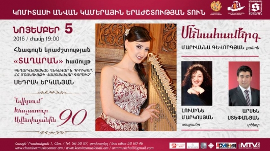 Նոյեմբերի 5-ին /19:00/ սիրով հրավիրում ենք Կոմիտասի անվան կամերային երաժշտության տուն՝ Հնագույն երաժշտության «Տաղարան» համույթի համերգին: