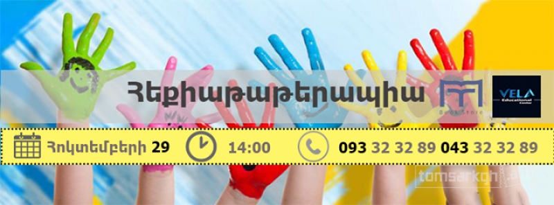 Հոկտեմբերի 29-ին՝ ժամը 14։00-ին, VELA ուսումնական կենտրոնում տեղի կունենա #MYbookstore-յան հեքիաթաթերապիան