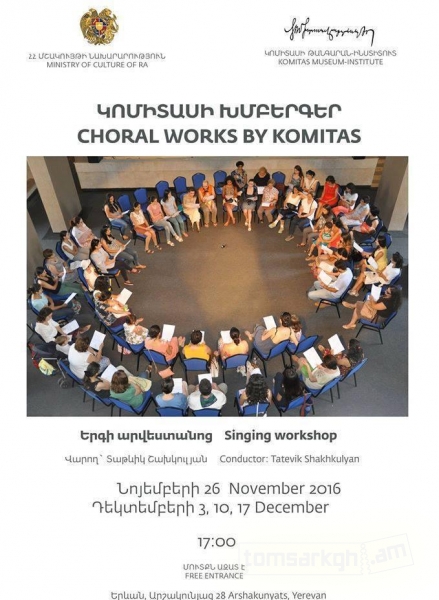 Խմբերգային երգեցողության հաջորդ հանդիպումը կկայանա դեկտեմբերի 10-ին` ժամը 17:00: Երգելու ենք Կոմիտասի հոգևոր ստեղծագործություններ։