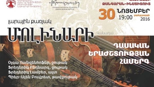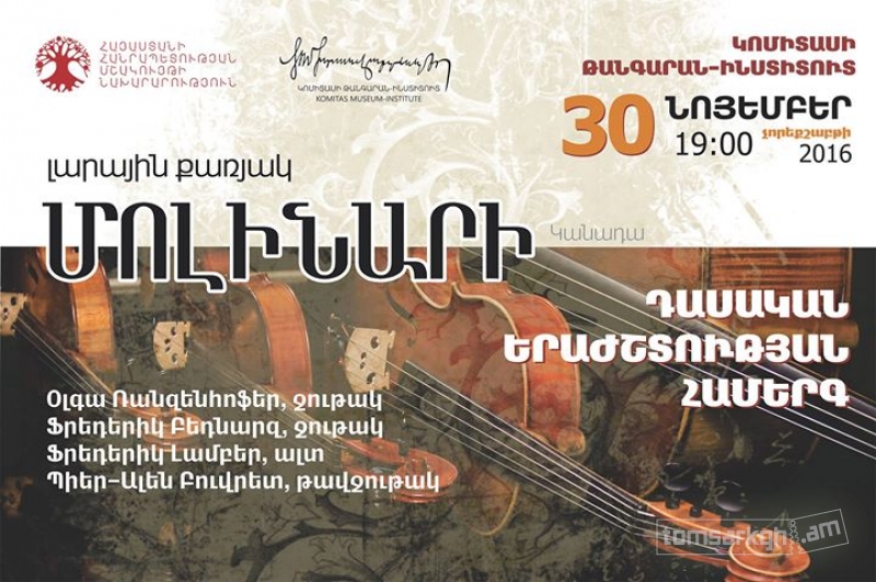 Նոյեմբերիի 30-ին՝ ժամը 19:00-ին ՀՀ մշակույթի նախարարության նախաձեռնությամբ և աջակցությամբ «Կոմիտասի թանգարան-ինստիտուտի» դահլիճում տեղի կունենան կանադական «Մոլինարի» լարային քառյակի համերգը: