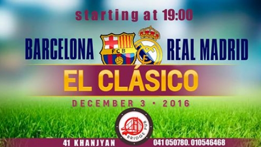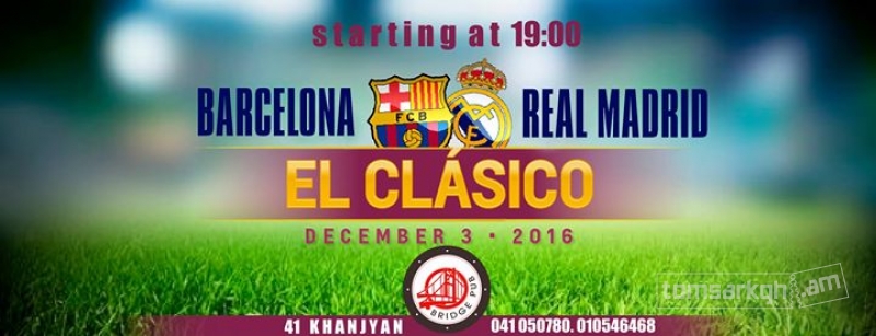 Այդ օրը բոլորը դիտելու են Բարսելոնա-Ռեալ Մադրիդ ֆուտբոլային խաղը և իհարկե Բրիջը հրավիրում է բոլորին թեժ ֆուտբոլային երեկոյի` երկրպագում, խմում, ուտում համով խորտիկներ։