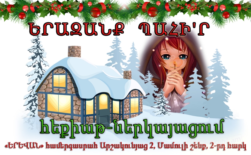 «Արմատ» մշակութային կենտրոնը ներկայացնում է «Երազանք պահի՛ր» հեքիաթ-ներկայացումը ըստ Հ.Ք.Անդերսենի «Լուցկիներով աղջիկը» հեքիաթի: Սուրբ Ծննդյան հրաշքն իրականացնելու համար, քաղաքի բնակիչներն ամեն հնարավորն ու անհնարինն անում են փոքրիկ աղջկան ուրախացնելու և երջանկություն պարգևելու համար: Հեքիաթի ավարտին լույսն ու ստվերը մտերմանում են և բարձր տրամադրությամբ դիմավորում Ձմեռ Պապիկին: