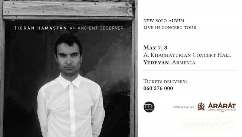 Տիգրան Համասյանը մենահամերգով ելույթ կունենա Երեվանում, մայիսի 7-ին Արամ Խաչատրյան համերգասրահում, իր նոր` "An Ancient Observer" կոչվող ալբոմի համերգային շրջագայության շրջանակներում։ Տոմսերի արժեքը` 3000, 5000, 8000, 10000, 15000, 20000 դրամ։