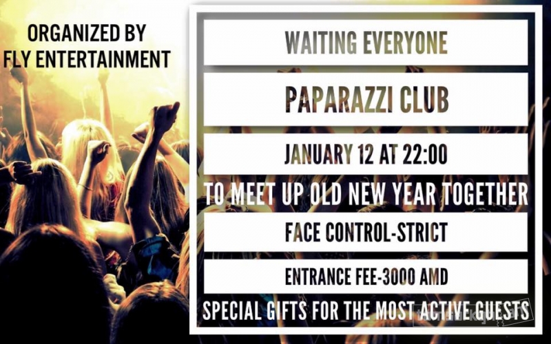 Let's meet up the Old New Year together At Paparazzi Club Entrance fee -- 3000 AMD Face control --Strict Special gifts for the most active guests