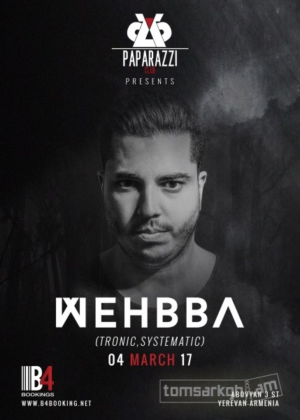 Paparazzi Club presents another super underground music session, and this time we will have the chance to listen for the first time in yerevan big artist WEHBBA. Brace yourselfs and Get ready for another High Class Saturday night.