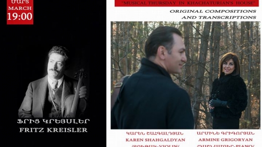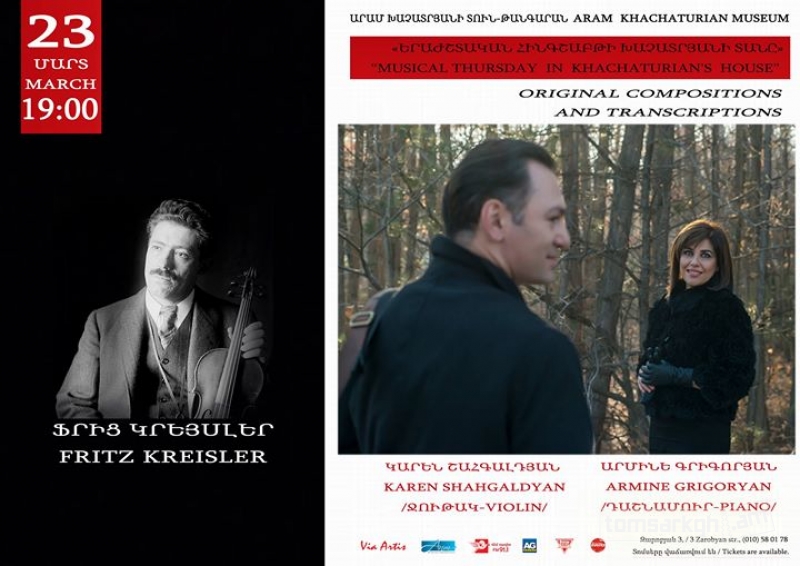 On Thursday, march 23, at 19:00 we are inviting all of you to enjoy the next concert from the series “Musical Thursdays in Khachaturian's House”. During the evening the original compositions and transcriptions of Fritz Kreisler will be performed.