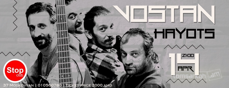 Vostan Hayots, Armenian rock band, is a “3rd wave” Armenian rock music representative. The band was found in 1986 by Areg Nazaryan. Soon after its creation the band became popular in Armenia and was one of the founders of the Armenian national movement. Band members had founded one of the first rock-clubs in Armenia, Stop Club. And now, enjoy with us legendar Vostan Hayots!