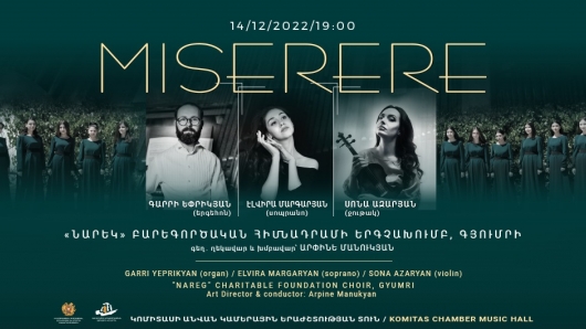 Յ. Ա .Հասսե – Միզերերե դո մինոր (փոխ. ՝ կամերային երգչախմբի և երգեհոնաի համար), մենկատար՝ Հեղինե Սարուխանյան /սոպրանո/