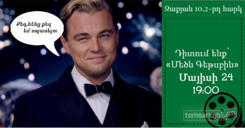 Մայիսի 2⃣4⃣-ին գնում ենք Թիմ Թայմի ընտանեկան, տաքոտ միջավայրում գրկենք թեյերն ու սուրճերը ու համո՜վ պեչենիների հետ միասին վայելենք «Մեծն Գեթսբին» ֆիլմը: