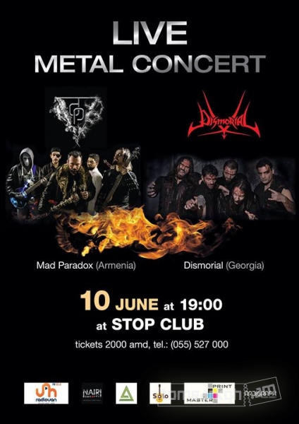 Հունիսի 10-ին ժամը 19։00 հայկական MAD PARADOX և վրացական DISMORIAL խմբերը սպասելու են մետալի բոլոր սիրահարներին STOP ակումբում։