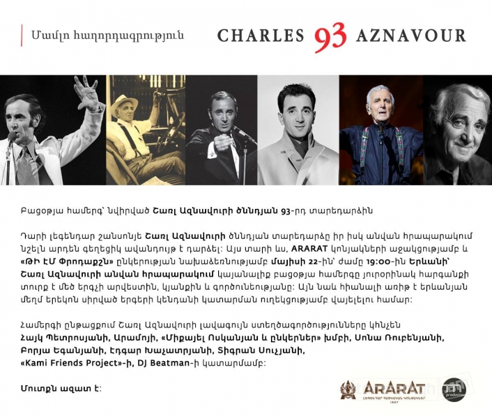 Բացօթյա համերգ նվիրված Շառլ Ազնավուրի ծննդյան 93-րդ տարեդարձին:
