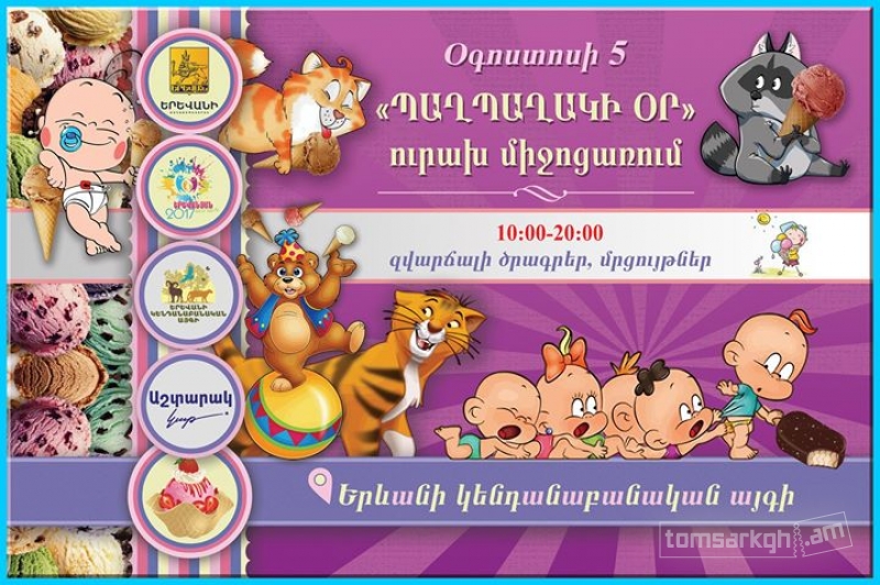 Օգոստոսի 5-ին «Երևանյան ամառ 2017» ծրագրի շրջանակում Երևանի կենդանաբանական այգու հանրային տարածքում կանցկացվի արդեն ավանդական դարձած «Պաղպաղակի օր» տոն-միջոցառումը։ Առավոտյան ժամը 10-ից մինչ ուշ երեկո այցելուներին սպասվում է ուրախ երաժշտություն, խաղ-մրցույթներ ու շատ-շատ պաղպաղակ խորհրդանշական ընդամենը 50 դրամ արժողությամբ։