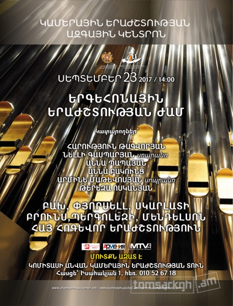 Սեպտեմբերի 23-ին 14:00 սիրով հրավիրում ենք Կոմիտասի անվան կամերային երաժշտության տուն՝ երգեհոնային երաժշտության համերգի:
