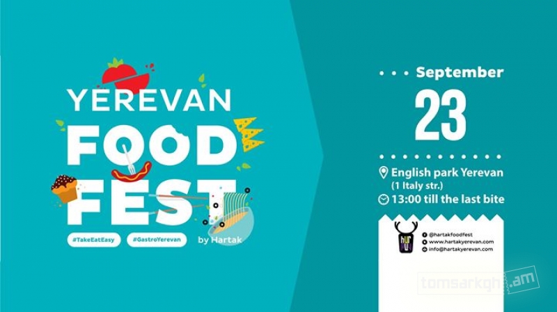 Սեպտեմբերի 23-ին ժ.13:00-22:00-ը` Անգլիական այգում տեղի կունենա ռեստորանային սննդի բացօթյա փառատոն, որի շրջանակներում Երևանի լավագույն ռեստորանների և սննդի արտադրության ոլորտի ներկայացուցիչները կներկայացնեն իրենց արտադրանքը, կցուցադրեն իրենց սննդակարգը և տեղում կվաճառեն իրենց ուտեստները հատուկ փառատոնային գներով: