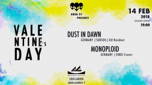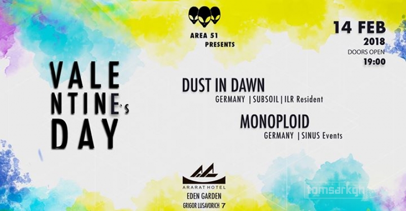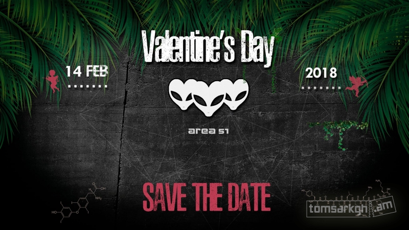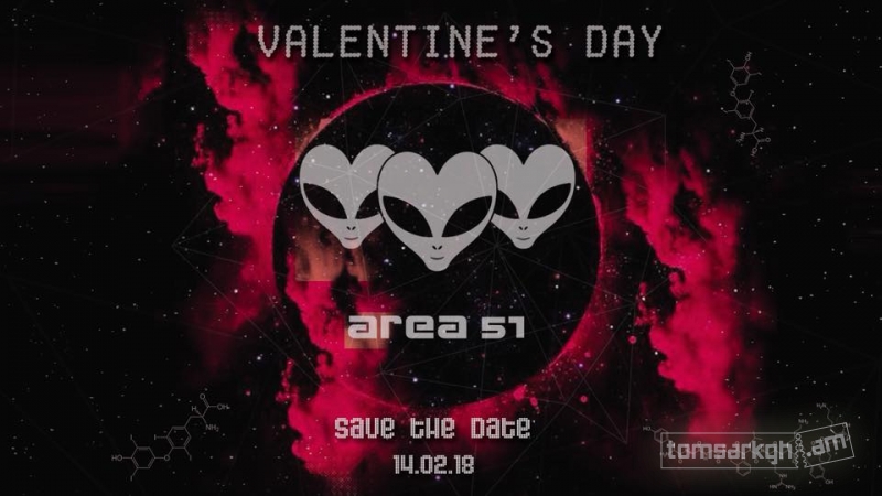 Area 51 –ը Ձեզ է ներկայացնում այս տարվա իր առաջին միջոցառումը` նվիրված Վալենտինի օրվան, որը տեղի կունենա Ararat Hotel Complex–ի Eden Garden –ում, նախկին BMW-ի ավտոսրահ (Գրիգոր Լուսավորչի 7)