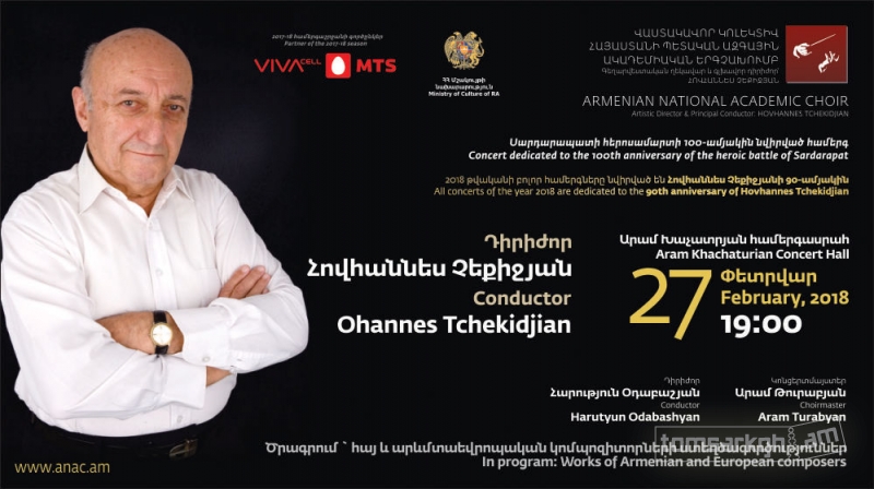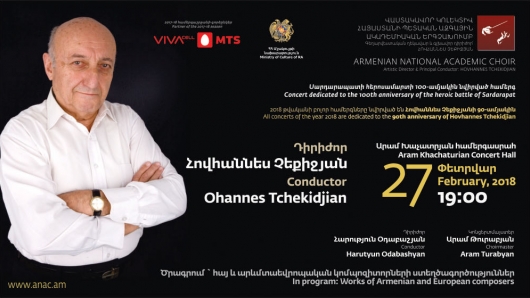 Արամ Խաչատրյան համերգասրահում տեղի կունենա Հայաստանի Պետական Ազգային Ակադեմիական երգչախմբի համերգը՝ նվիրված Սարդարապատի հերոսամարտի 100-ամյակին: