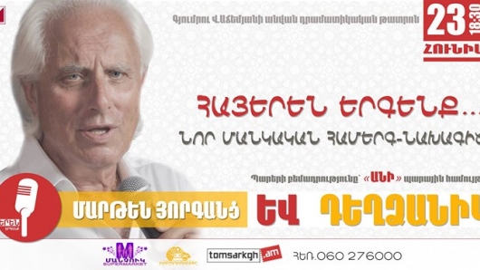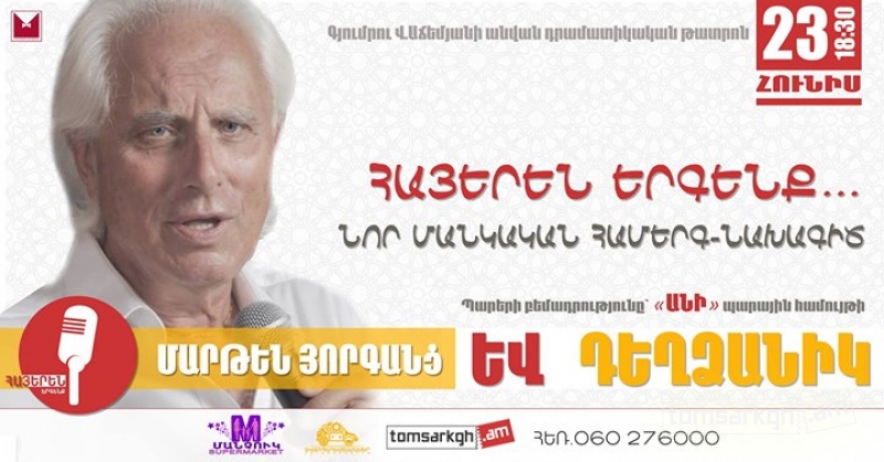 Հունիսի 23-ին, 18:30-ին Գյումրու Վ. Աճեմյանի անվան պետական դրամատիկական թատրոնի դահլիճում մանկական համերգ-նախագիծ «Հայերեն երգենք»: