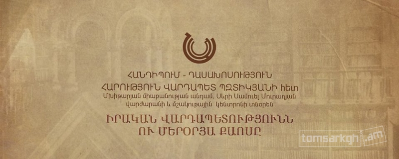 Օգոստոսի 1-ին՝ ժամը 19:00-ին, «Նարեկացի» արվեստի միությունում տեղի կունենա հանդիպում - դասախոսություն Մխիթարյան միաբանության անդամ, Սևրի Սամուել Մուրադյան վարժարանի և մշակութային կենտրոնի տնօրեն Հարություն վարդապետ Պզտիկյանի հետ: