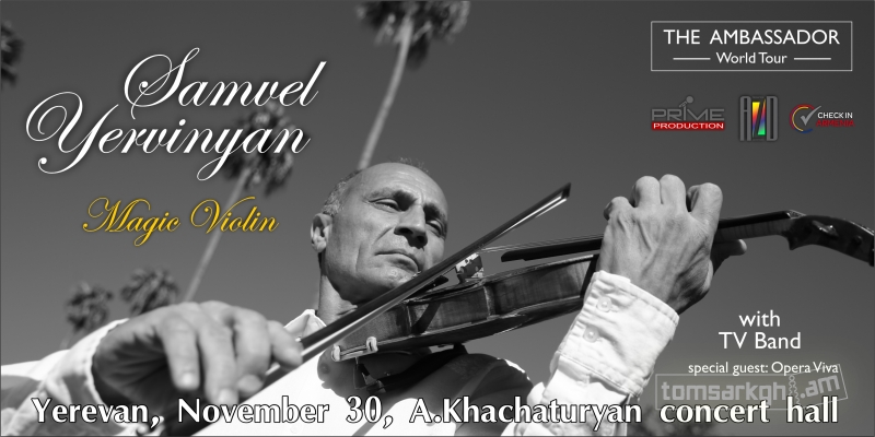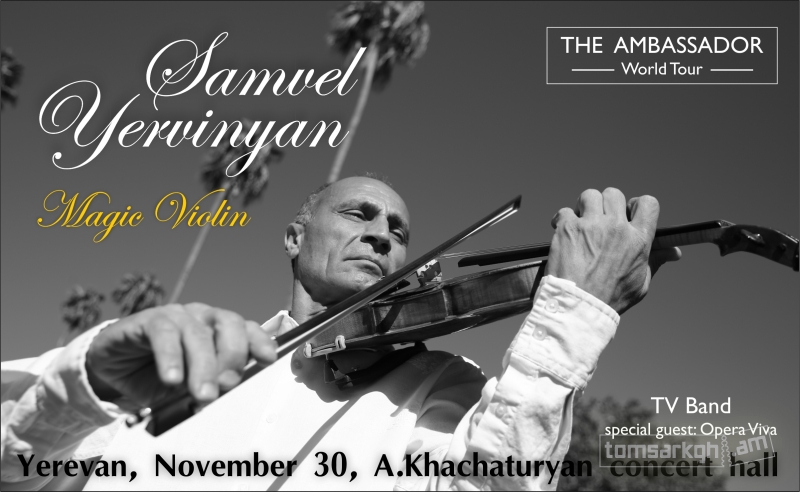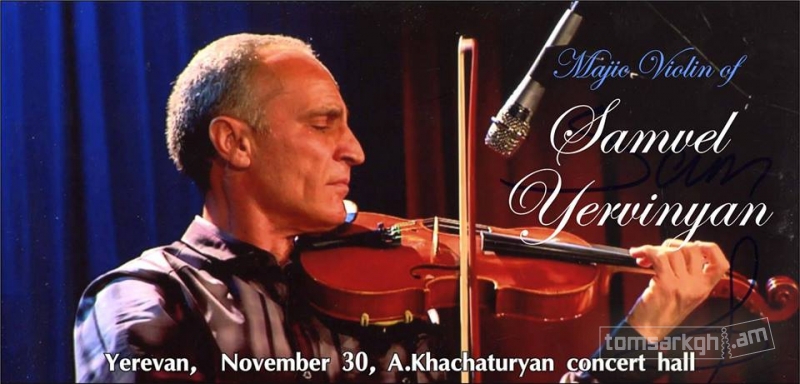 Նոյեմբերի 30-ին ժամը 19:00-ին Արամ Խաչատրյան համերգասրահում տեղի կունենա հայ ջութակահար, Յաննի խմբի մենակատար Սամվել Երվինյանի համերգը: