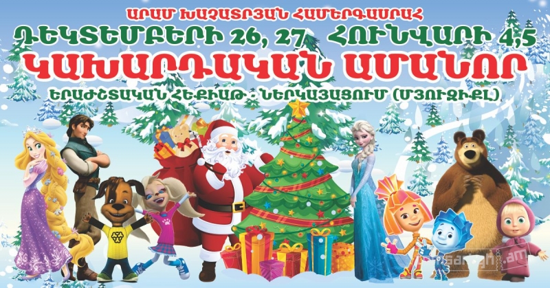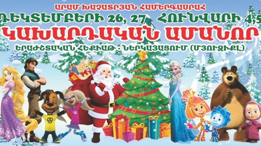 Կհանդիպեք սիրված հեքիաթի հերոսներին՝ սիրելի Ռապունցելին, Էլզային, Մաշային, Արջուկին, Բարբոսկիններին, Ֆիկսիկներին, քաջ Ֆլին Ռայդեռին և նրանց հետ կտեղափոխվեք ամանորյա կախարդական աշխարհ՝ լի անակնկալներով : Իսկ Ձմեռ պապն ու Ձյունանուշը կուղեկցեն մեր բարի